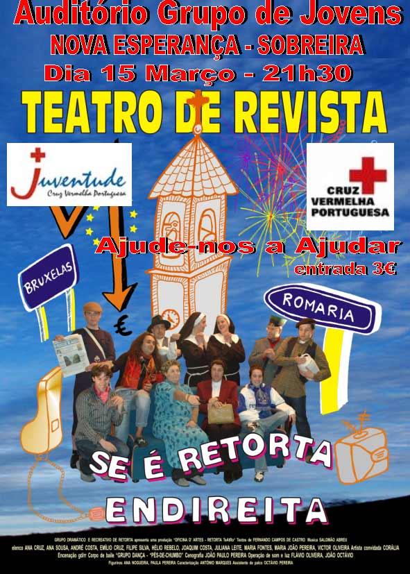 A Juventude Cruz Vermelha - Delegação de Sobreira realizará um teatro no próximo Sábado, dia 15 de Março. O evento realizar-se-á no auditório do Grupo de Jovens de Sobreira (no edifício da junta de freguesia de Sobreira). Clique em Ler Mais para ver o Cartaz.
