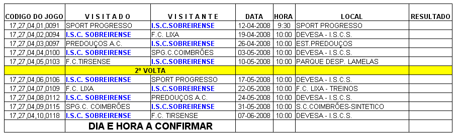 | SENIORES | BOIM | SOBREIRENSE | 4-1 |
